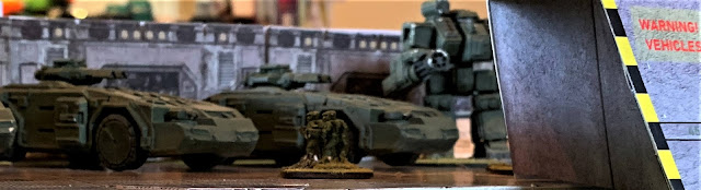 Then it was Scale Test time, re-tuning for 15mm - only multi-shot weapons needed adjusting. This time the only sci fi 15mm I had painted got put in the front line, a platoon of GZG's New Israeli.
